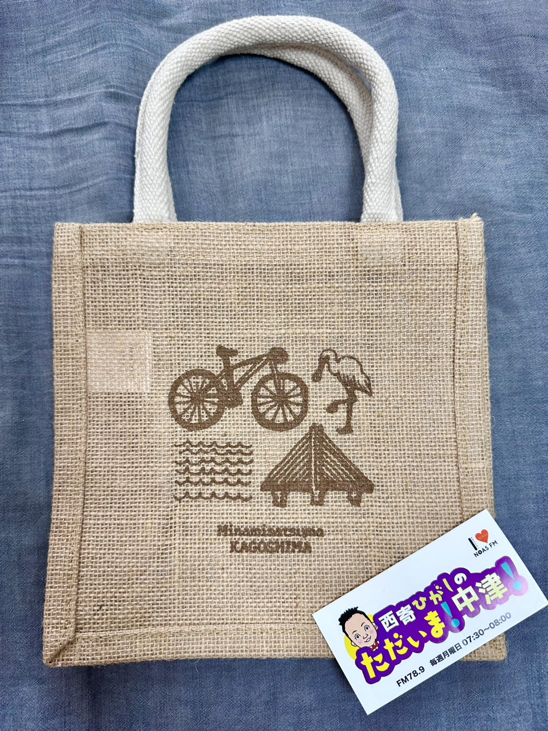 パーソナリティの西寄ひがしさんより、「南さつまジュートバッグ」のプレゼントをいただきました。